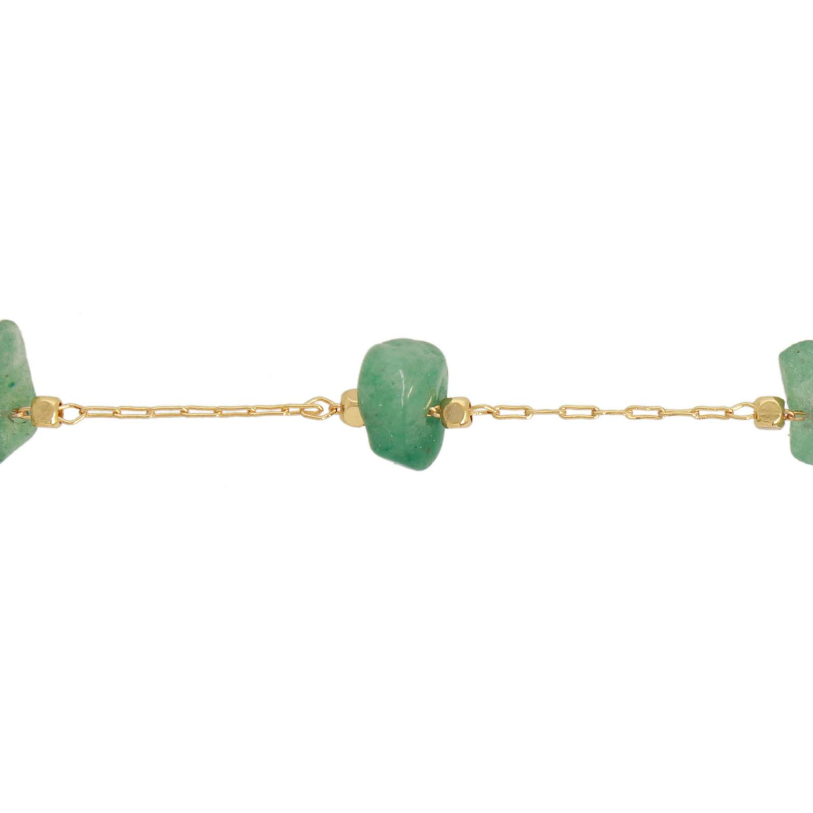 La nostra catena di rosario dorata con chips di avventurina verde rappresenta la fusione perfetta tra eleganza naturale e fascino artigianale. Realizzata in ottone con una sofisticata galvanica oro, questa catena arricchisce ogni creazione con il suo splendore dorato e l'incantevole colore verde delle pietre dure. Le chips, di dimensioni variabili tra 5 e 10 mm, sono sapientemente incastonate su una catena forzatina fine, creando una meravigliosa struttura ritmica che ispira infinite possibilità creative.