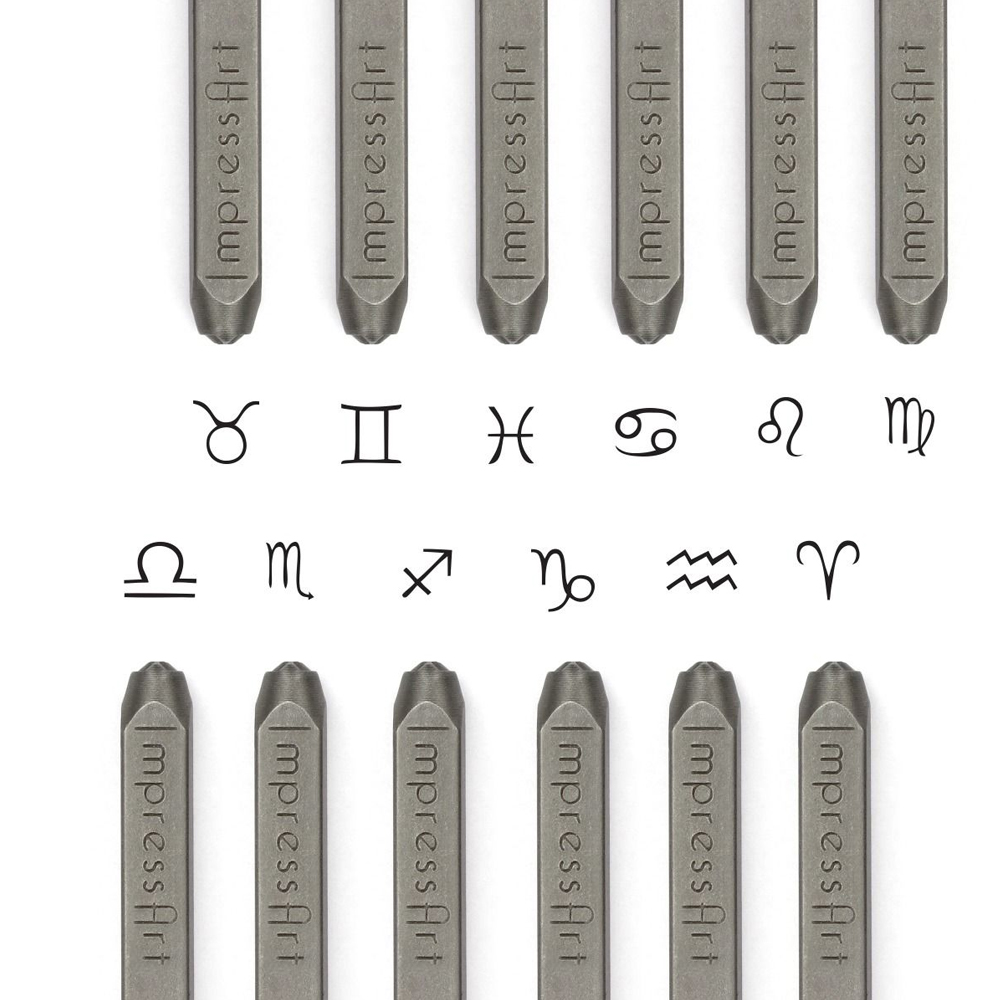 Esplora nuove dimensioni creative con il nostro set di punzoni a tema astrologico da 3mm - 12 pezzi, perfetti per personalizzare e arricchire i tuoi progetti di gioielleria artigianale. Questi eleganti punzoni ImpressArt garantiscono risultati di alta qualità grazie alla loro realizzazione in acciaio temprato, ideali per una stampa nitida e duratura su una vasta gamma di metalli, tra cui alkemé, alluminio, rame, e persino acciaio. Ogni punzone presenta simboli dettagliati per rappresentare con precisione ogni segno zodiacale, permettendoti di esprimere il tuo estro e la tua personalità in maniera unica e sofisticata.